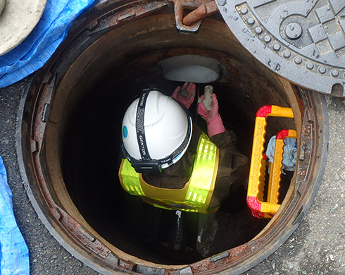 私はパイプメンテナンス部で、主に小さな口径の下水道管路の更生工事の施工管理をしています。更生工事を簡単に説明すると、既にある下水道管をきれいにして、更に長い期間、下水道を使えるようにする工事のことです。