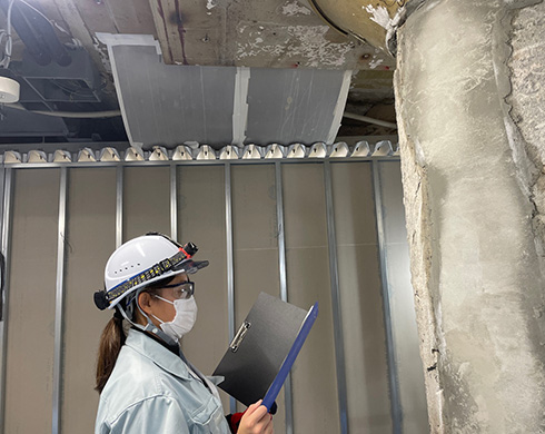 朝礼時にKY(危険予知)活動で作業の危険なポイントとその対策を確認し、その日の一日の流れを元請や協力業者と打ち合わせを行ってから作業に取り掛かります。日中は安全面では安全帯使用状況の確認・指導、安全設備の設置、立ち入り禁止措置等を行い、協力業者や他の業者が安全に作業できるようにします。品質面では材料の使用量や出来形などをチェックして品質の確認を行ったり、施工状況の写真撮影をしています。現場が動いていない日は会社や現場事務所で書類の作成や打ち合わせ・現場の下見に行ったりしています。