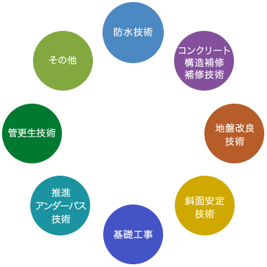 地下街や地下鉄の開発のベースを作ることや、液状化対策、耐震強化や土壌改善を行っています。よりよい暮らしづくりを、地下深くから高度な技術を幅広い視点で対応しています。
