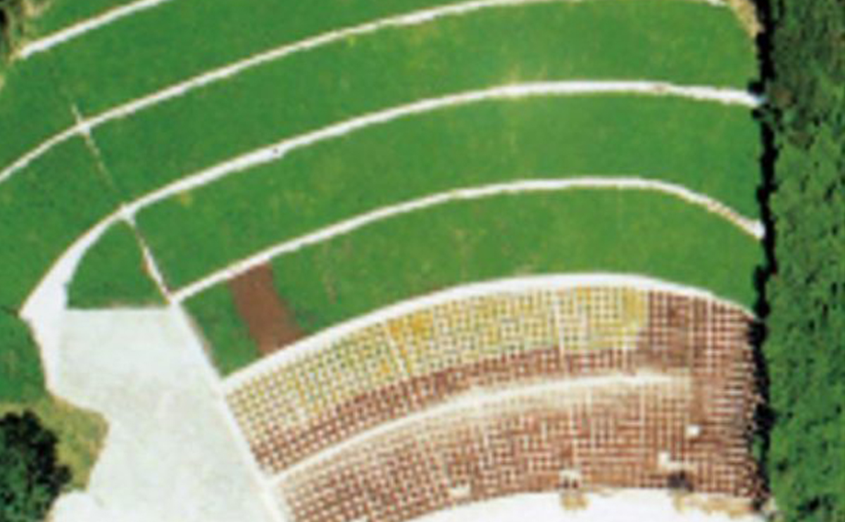 OBソイル緑化工法は、植生活性剤を混入した有機系人工土壌「OBソイル」をのり面に吹付けるだけで緑豊かに彩るのり面緑化工法です。