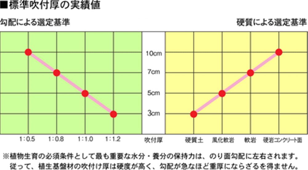 - 有機質系の材料を使用し、木本類の育成を助長させることを主眼にした配合で、植生基盤材としての永続性に優れています。