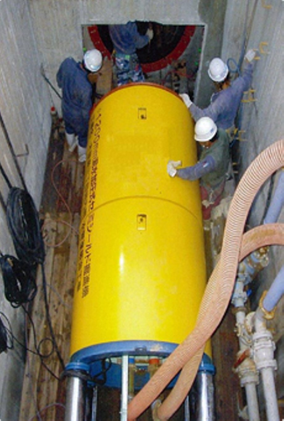 - 長距離推進において、互層地盤に遭遇した場合、地層に応じたビットを交換することができる掘進機です。