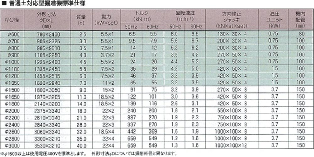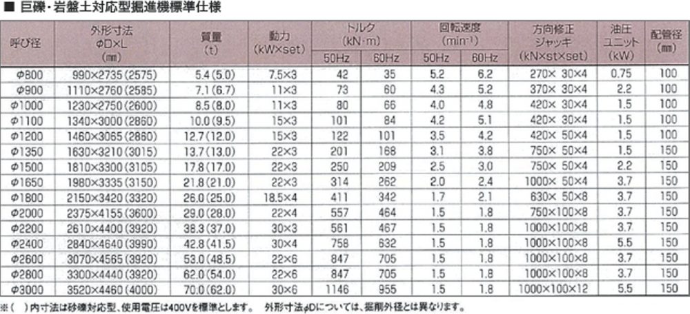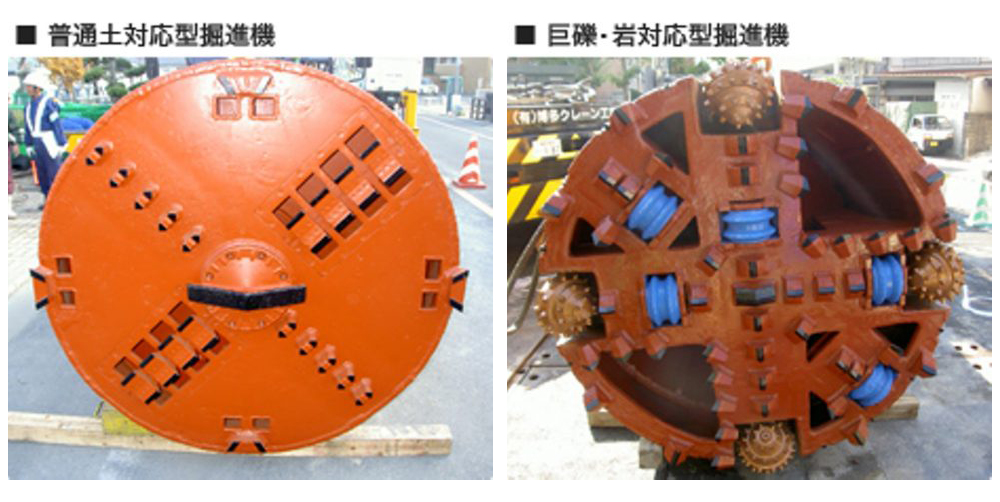 - 管径φ250mm~3,000mmまでを対象に、面盤のカッタディスクを土質に応じて交換することにより、あらゆる土質(普通地盤・礫・玉石・巨礫・軟岩・中硬岩・硬岩)に対応できます。