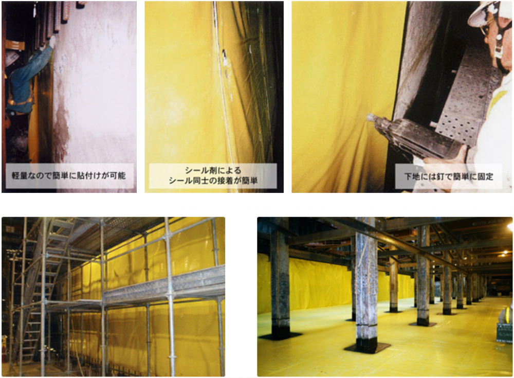 - シートは3種の特長を持った積層タイプとなっており、強靭性、柔軟性と強接着性を有しています。