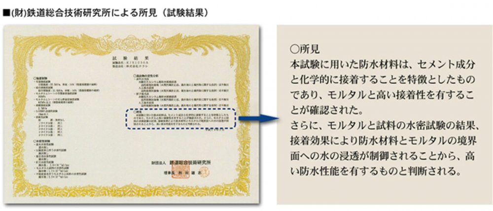 - 水頭差50mの外水圧に対しても高い水密性能が確認されています。